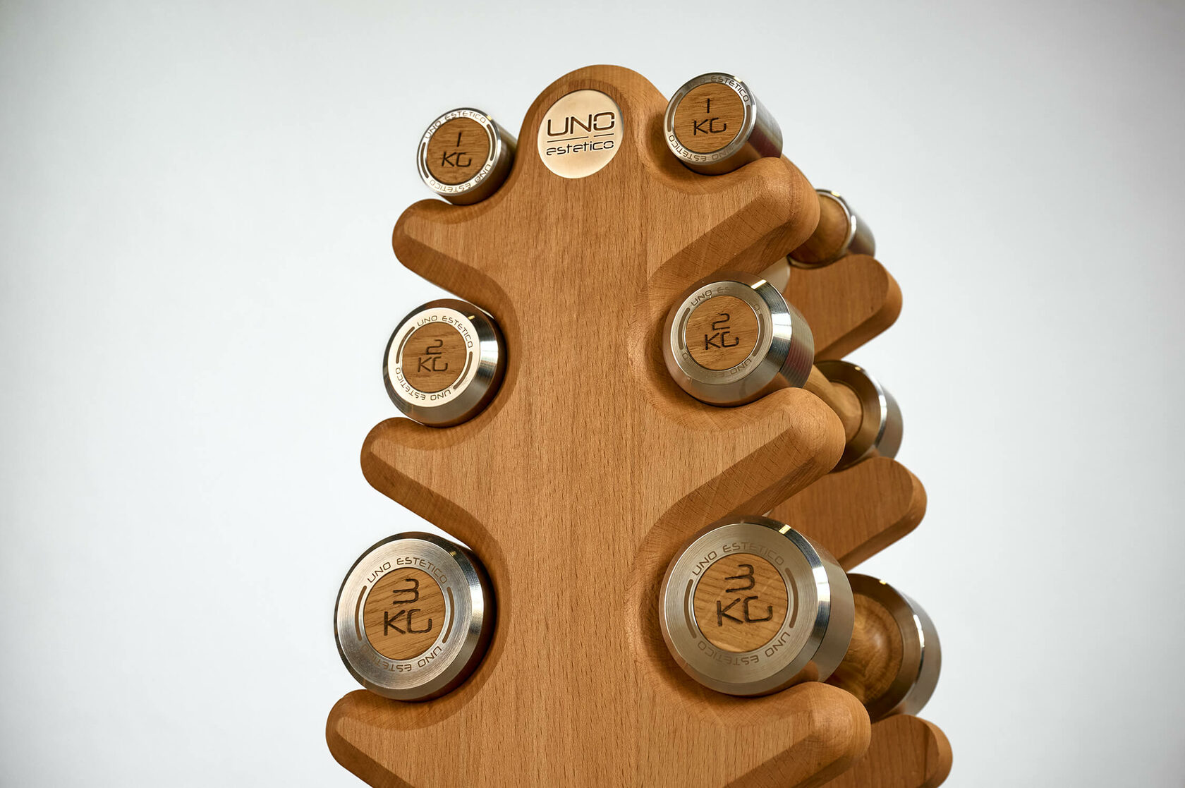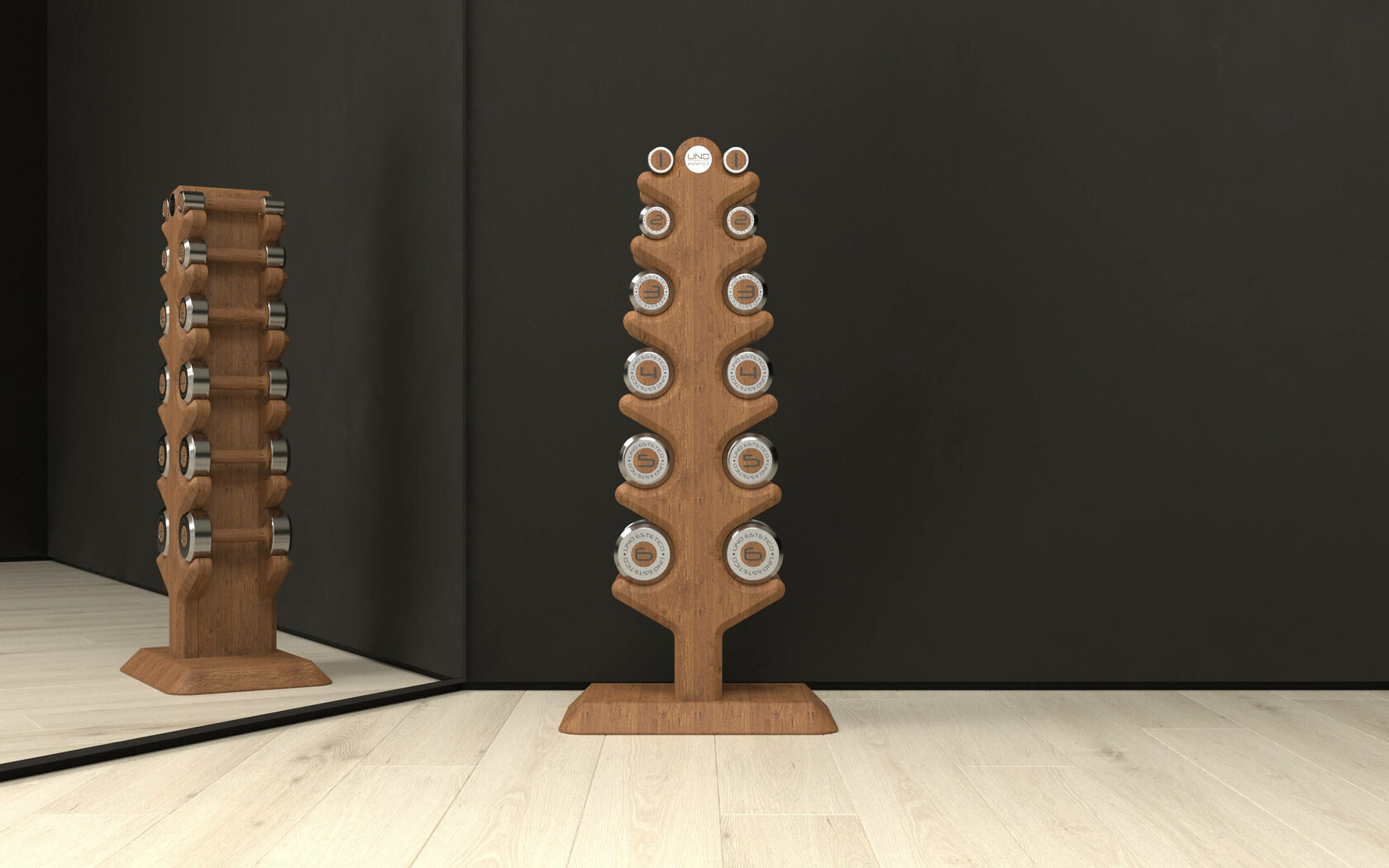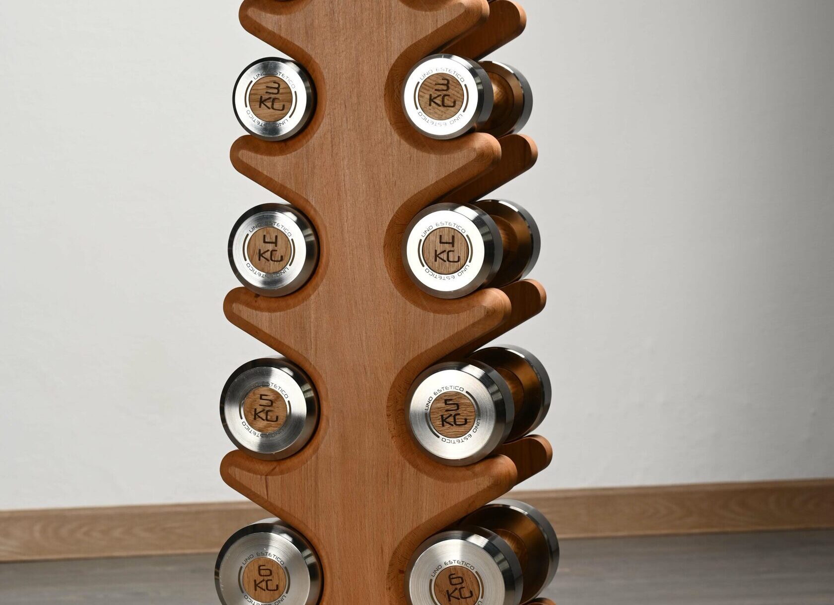 С системой хранения UNO Albero Mini вы сможете со вкусом разместить гантельный ряд на минимальной площади. Система может быть изготовлена из массива бука или массива дуба по вашему желанию.