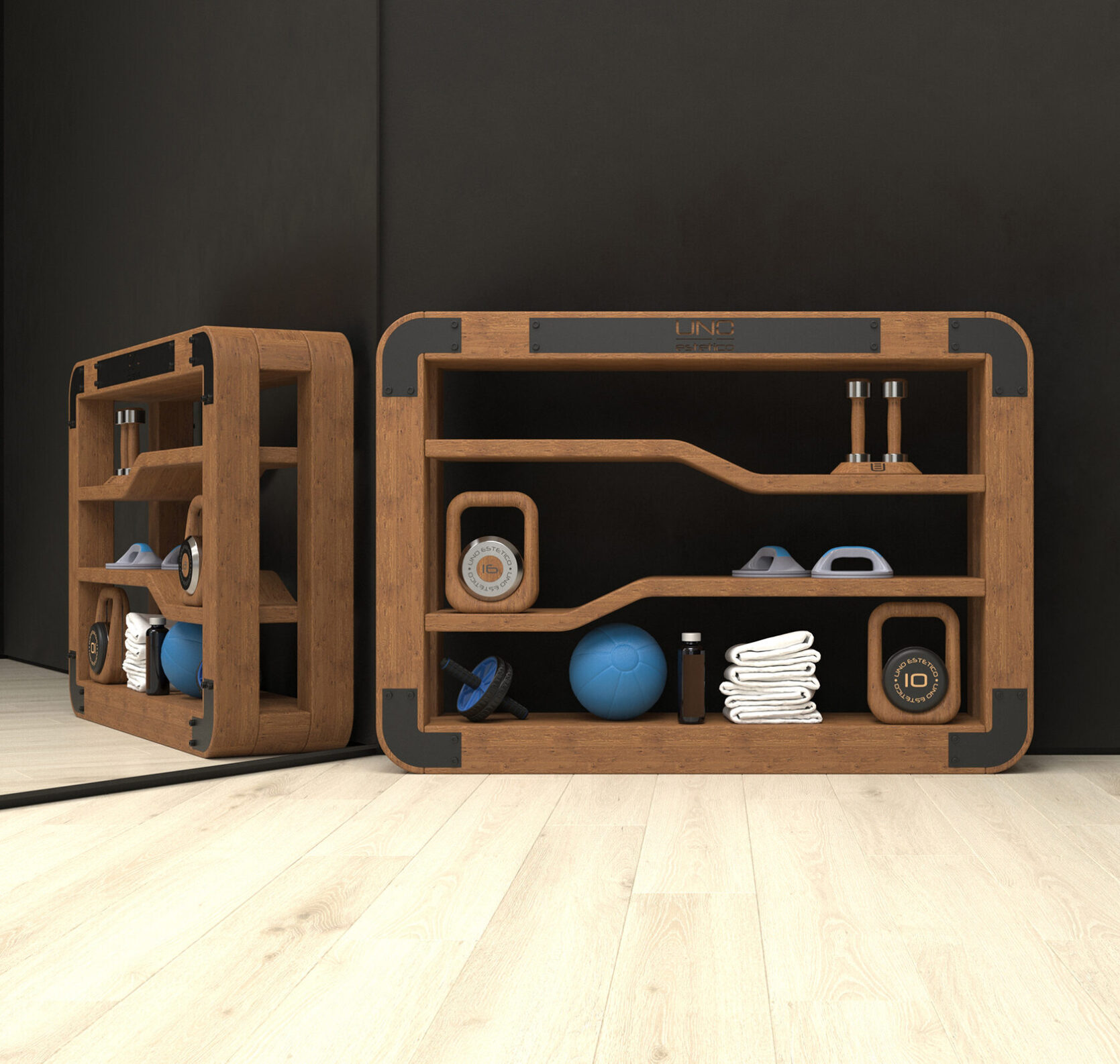 С системой хранения UNO ECO вы сможете красиво и аккуратно хранить все свои спортивные аксессуары и гантели.