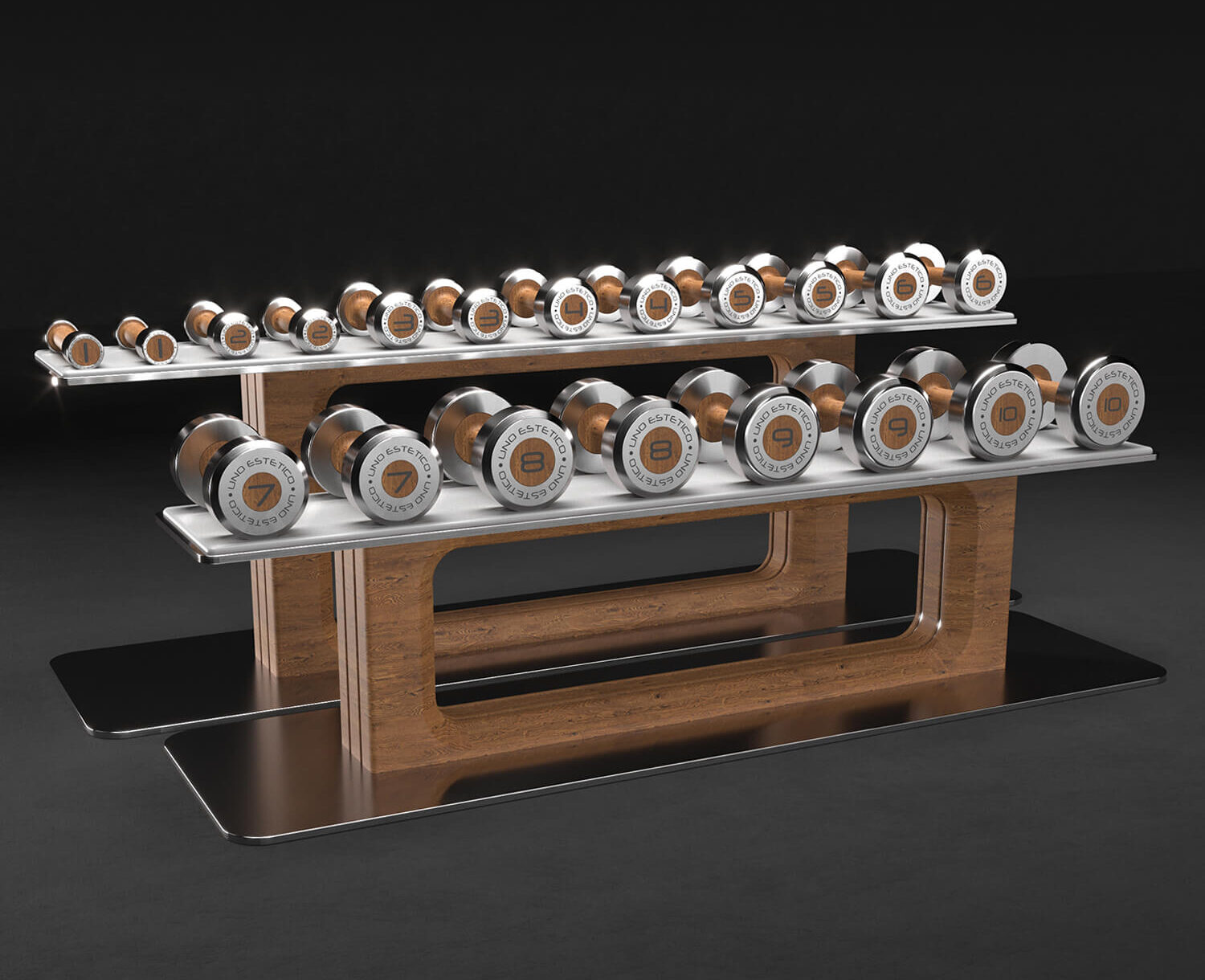 С системой хранения UNO Albero Mini вы сможете со вкусом разместить гантельный ряд на минимальной площади. Система может быть изготовлена из массива бука или массива дуба по вашему желанию.
