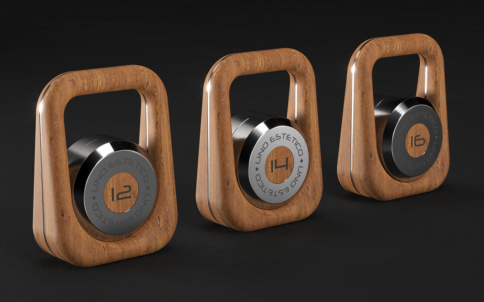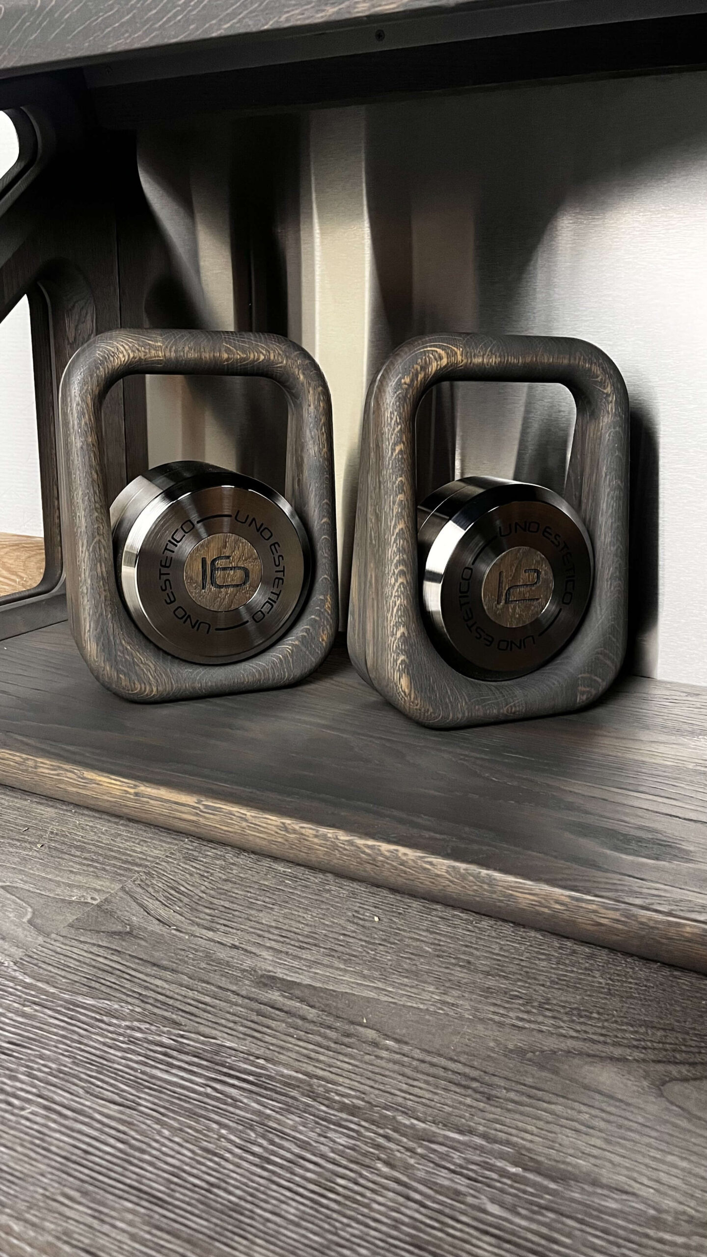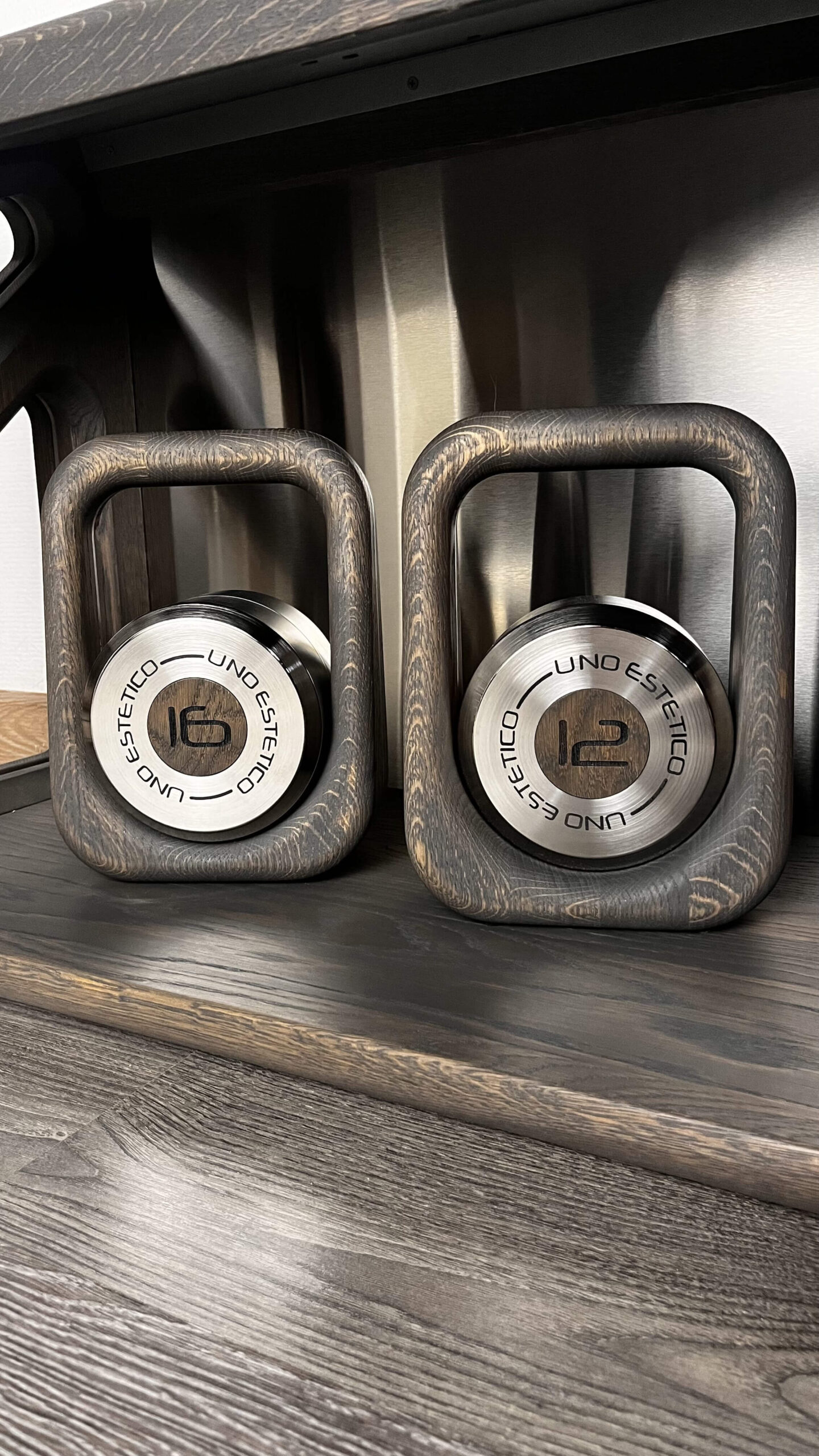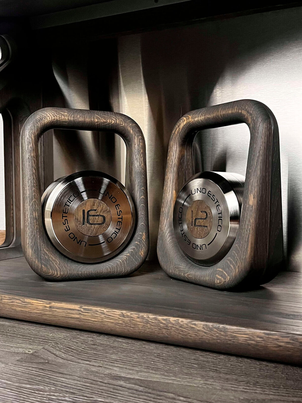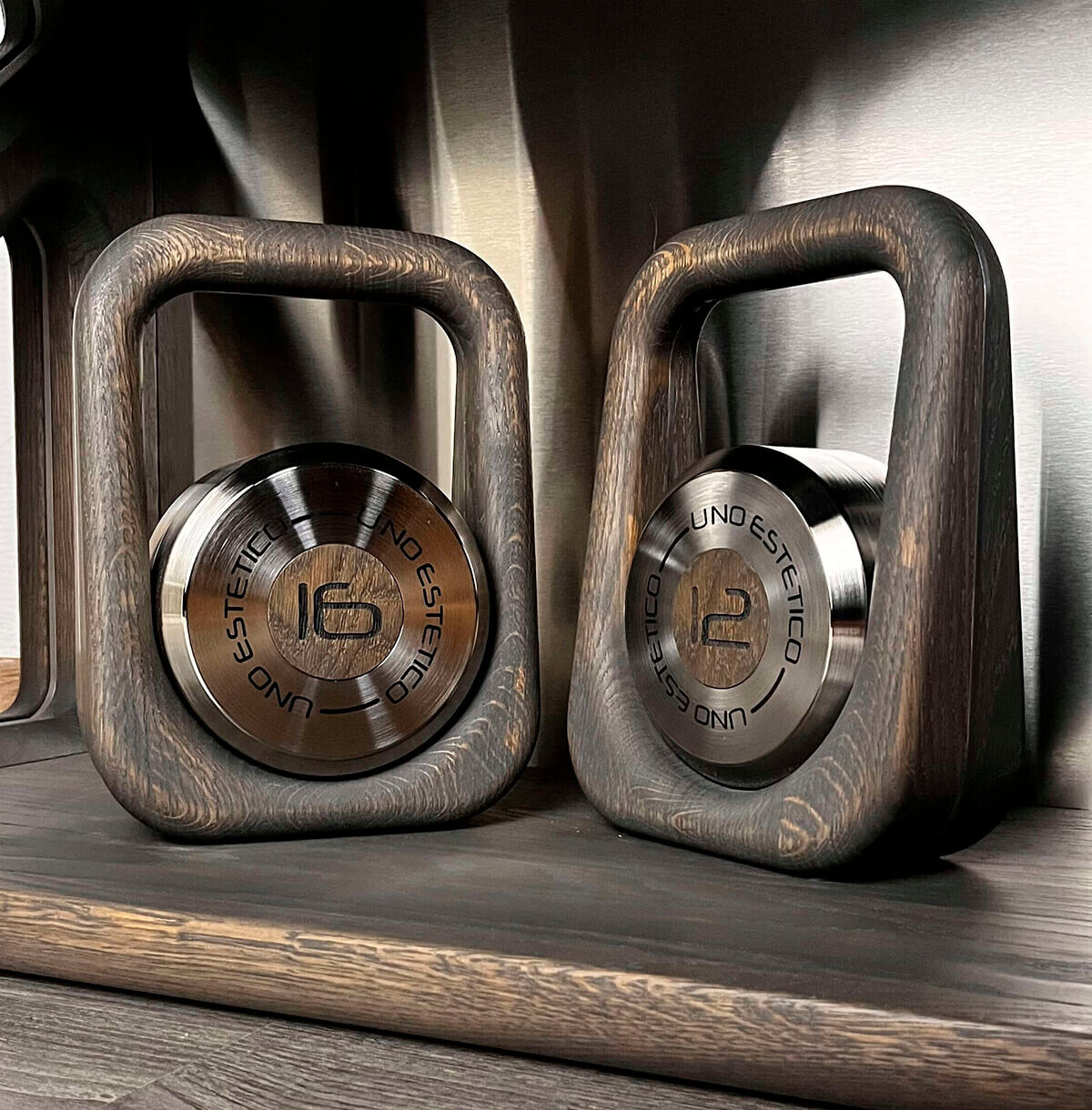 Гири UNO BRIO 12-16 кг из массива дуба и нержавеющей стали AISI